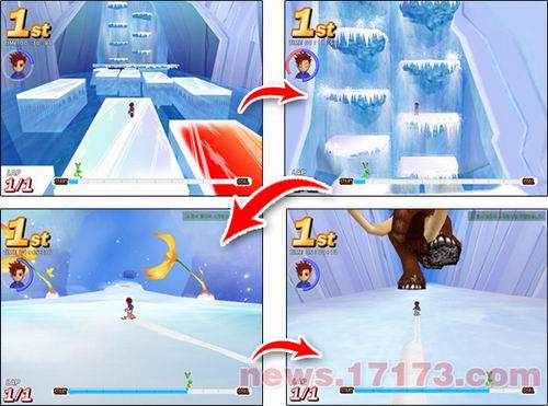 新地图冰河时代由长毛象、企鹅等新NPC和冰之谷、冰锥瀑布、白雪崖等场景构成。通过新地图玩家不仅可以体验极速、躲避障碍物的乐趣、还可以体验开始新故事的新鲜感。(文/17173小韩)
