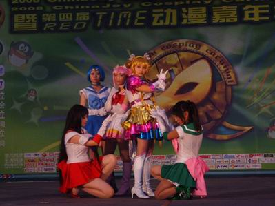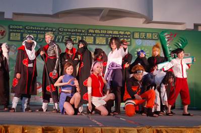 今天参加表演的社团和节目还有, 重庆CELL漫迷社的“FFX-2——回忆的微光”;三千未来动漫社的“遥远的时空中——舞一夜”;唯爱动漫社的“动漫大杂烩”;ONCE社团的“黑礁”; 贱魂葬社团的“新撰组异闻录”; 有间动漫社的“传说”。