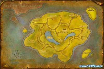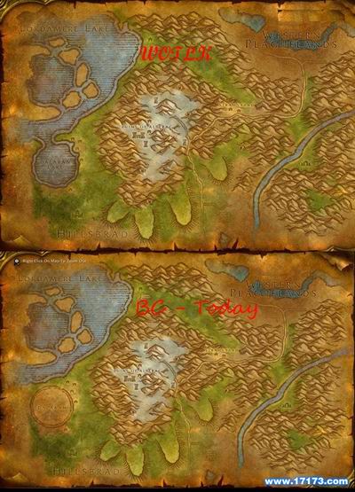希尔斯布莱德地图新旧比较,注意左下角达拉然地区(上图:新 下图:旧)