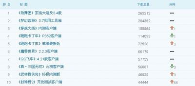 《跑跑卡丁车》国服的最新客户端下载上周排行第三的位置被上上周开始全面开放内测的《穿越火线》代替而排在了第四位,跌出了前三甲。而《跑跑卡丁车》韩服客户端的下载上周又上升了3个位置排在了第五位。