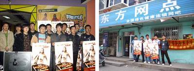 在所有活动网吧的门口、过道上以及收银台前,都布满了《神泣》的宣传品,看这些精美的海报、醒目的活动公告,以及“庆贺网通16大区开放”大横幅。
