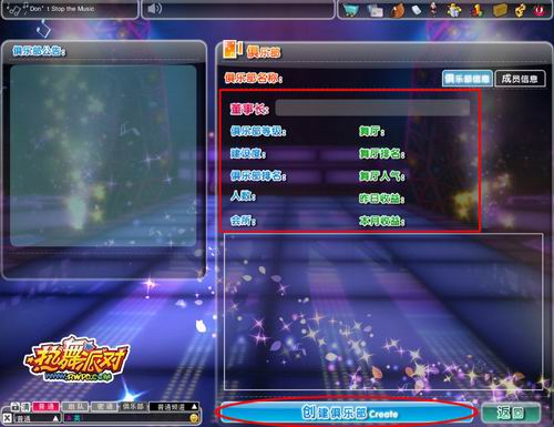 当俱乐部从一级升到三级后,就可以经营自己的专属舞厅了。舞厅不同于游戏房间,可容纳更多玩家。玩家在舞厅可以群舞,也可以随时交流。玩家进入舞厅需交纳一定的游戏币,并为舞厅积累人气指数。进入舞厅的人越多,舞厅的收益和人气就越高。而由舞厅收益获得的奖励将由俱乐部所有成员分享,意外惊喜哦!