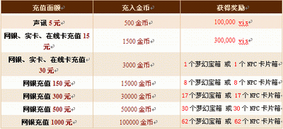 3、 本次活动除5元和15元充值面额外,其他面额均可选择奖励(梦幻宝箱或NPC卡片箱任选一种)。