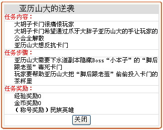 天下间第一奇毒究竟为何物,“亚历山大的逆袭”这任务告诉我们什么都比不上“脚后跟老茧”!想必设计这个任务的玩家一定是个星爷的忠实粉丝,不但无厘头功底非同小可,就连奖励称号“民族英雄”都向星爷的电影致敬!