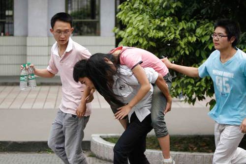 成都,女生被地震吓晕
