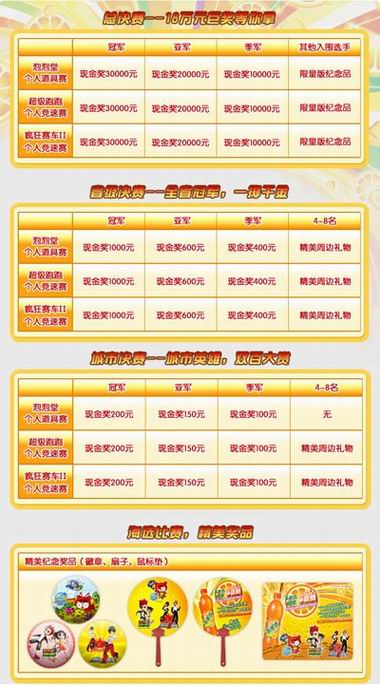 2008美年达游戏达人争霸赛,《超级跑跑》的选手们将会通过海选、城市决赛、省级决赛、全国总决赛,层层角逐出最终胜利者!高手对决,激烈空前!精彩无限!