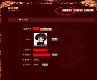 三、进入“玩家信息”页面之后,点击右上角的“激活礼品”