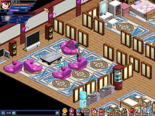 凤凰旭日花园“Q宝儿Q”的家则是一个典型的女儿家设计。进入玄关则见一个高科技的触摸式操作台,旁边是一对高雅的高跟鞋,令人立即感受到女主人是一个十分幽雅的人。整个房子铺满高贵的真皮地毯,出手之阔绰令你咋舌。两套厨具,三个精灵兽培育机,可以想象得到女主人的厨艺肯定非常棒,而且是一个喜欢小精灵的有爱心的女孩。最具特色的是主人卧室,以暖色调为主色,松软舒适的淡黄色大床,贵族式的衣柜,精致的化装桌,给人温暖和甜美的感觉。会客厅里摆放着高档的音响组合,个性独特的紫红色单人沙发,张扬之极。让想意想不到的是二楼整层竟然是个音乐室,一个古典钢琴,一把小提琴,两张真皮大沙发,几盏玻璃壁灯,还有一只布娃娃熊,一切一切显示出主人是一个充满艺术气质的可爱女孩子。