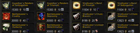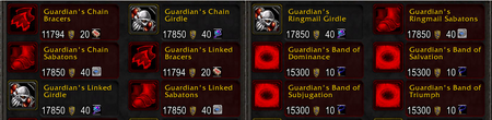 保护者系列装备的价格基本和现在的守备官装备一致,装备等级为154和159。