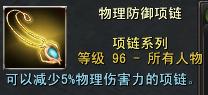 项链:5%减少物理伤害项链、5%减少火枪伤害项链、5%减少火焰伤害项链、5%减少冰寒伤害项链、5%减少雷电伤害项链、5%减少意念伤害项链