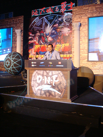 2008年6月15日下午,《地下城与勇士》(以下简称DNF)公测新闻发布会于上海卢湾体育馆召开。腾讯科技有限公司总裁刘炽平先生、三星电子(韩国)常务权康铉先生、DNF开发商Neople公司CEO许民先生等三方公司高层,出席了本次会议。