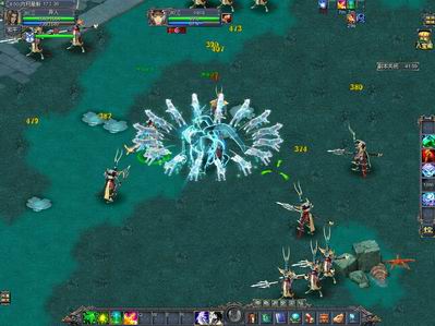 哪吒祭起混天绫,直把龙宫荡了个山摇地动,果真是翻江倒海。大批龟丞相齐齐冲出来围攻厮杀。数量可真不少呢,赶块保护哪吒,使劲杀呀! 也不知杀了多少龟丞相,龙宫三太子终于现身了!