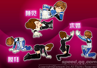 膜拜——在休闲区输入“/膜拜”“/Orz”“/囧”“/五体投地”等字符时,人物会有相应特殊动作表现。
