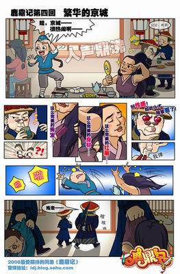 今天《鹿鼎记》爆笑漫画第四回新鲜到货,双手奉上让各位一睹为快。韦小宝原本在扬州丽春女子技术学院过着平凡的生活,一次巧遇让他结交了驰名中原的个性侠客茅十八,由于两者都十分喜好认识美女,韦小宝和茅十八相伴共同向京师进发,开始寻找美女之路,谁知道刚刚进京还没半小时,一场计划外的一见钟情,将他们的行程全盘打乱……