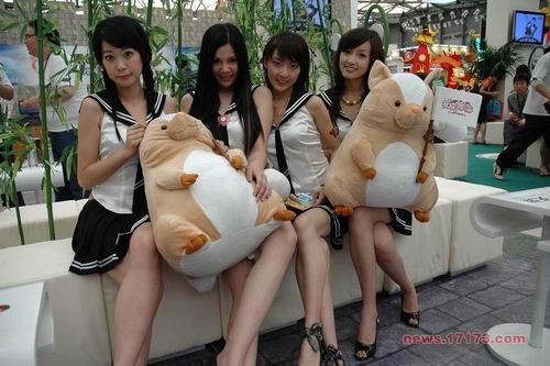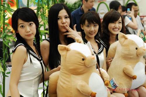 天游在本次Chinajoy的展台需从一个“拱门”中进入,展台提供了各类新游的试玩,还有多位手拿吉祥物的Showgirl陪伴。