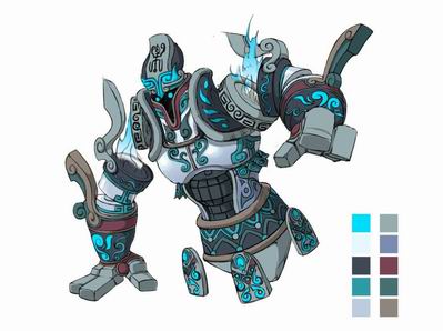 天壶锦石卫:顽石大仙为保护天砂壶而制造的石头质感的“机关人”。只有上半身、头部、双手。它的身体前倾,其中一只巨手撑在地上保持身体的平衡,另一只手的几根手指仿佛弹琴一般悠闲的点着地面。