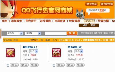“钻石恒久远,一颗永流传”,每每听到或看到这句话,人们马上就会联想到钻戒。是的,每对深爱的情侣都会想要留下他们爱的见证,钻戒的必要性在这一刻体现的淋漓精致。无论古今中外,现实虚拟,钻戒都是情侣间不可或缺的,《QQ飞行岛》商城情侣戒指专区买200送100nana点的返点活动正是天赐良机啊,你还在等什么,赶紧带上心爱的她(他),一起去shopping吧!