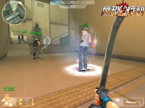 刚刚来到《反恐行动》的朋友都会觉得挥舞几下大刀实在很酷,一出生必做的事就是挥着大刀往外冲,可是真正与他人第一次拼刀时,总是控制不好自己的心态的操作,鼠标乱点,就好象是港片中单纯少女遇到恶棍,随手拿起水果刀闭上眼睛尖叫着一阵乱砍,结果被恶棍看准时机一巴掌煽晕的镜头。偶尔在菜鸟刀房混战中劈死一两个人立刻兴奋的不得了。这是爱上耍刀的第一个理由。