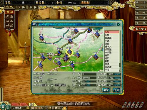 经济的发展为**的发展提供根本的物质基础。为了增加城池的繁荣度,你必须派出武将对己方势力的城池进行商业。此时武将的选择对商业的进行有着相当的影响:智力高的武将较适合从事商业,若武将拥有商业的武将技,其从事商业时所增加的数值也较高。