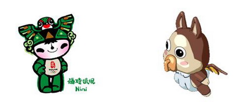 福娃妮妮:福娃妮妮来自天空,是一只展翅飞翔的小燕子,天真无邪、欢快矫捷的妮妮将在体操比赛中闪亮登场,她代表奥林匹克五环中绿色的一环。 妮妮代表好运北京,寓意将具有中国特色的奥运精神展示给全世界。