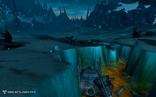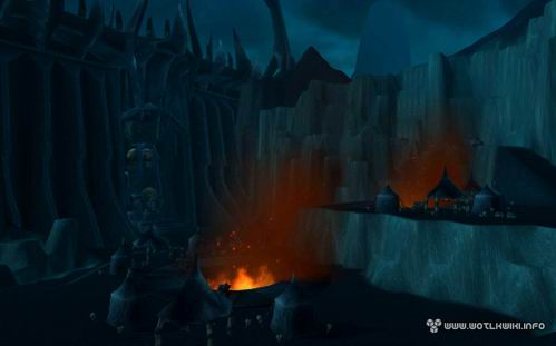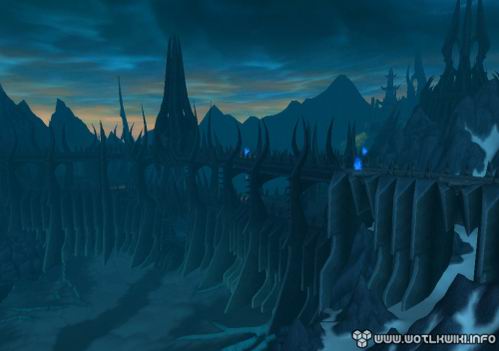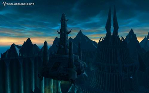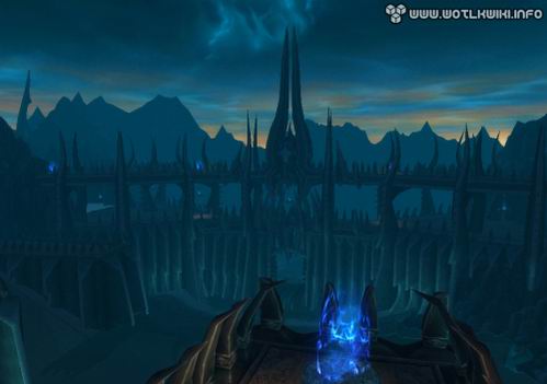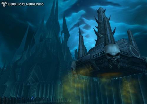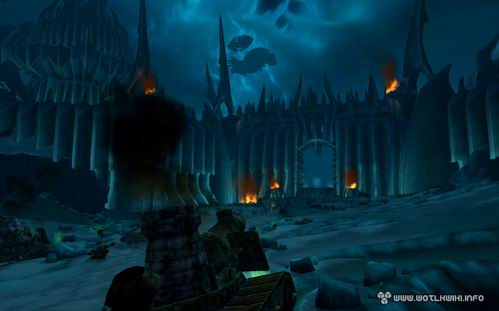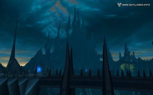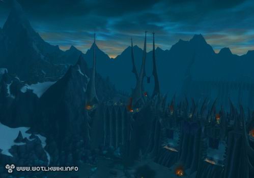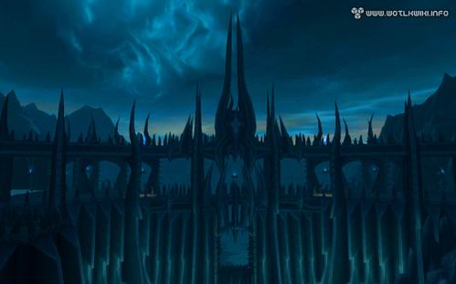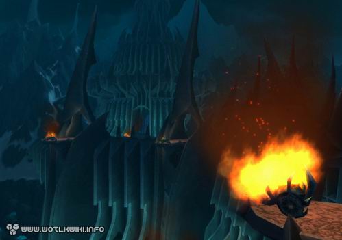 而现在,我们将能亲临其间。在《巫妖王之怒》中,这里成了天灾军团的大本营,风格造型颇为类似《指环王》中的魔多:有着巨大的城墙和铁门,以及永远灰暗的天空。