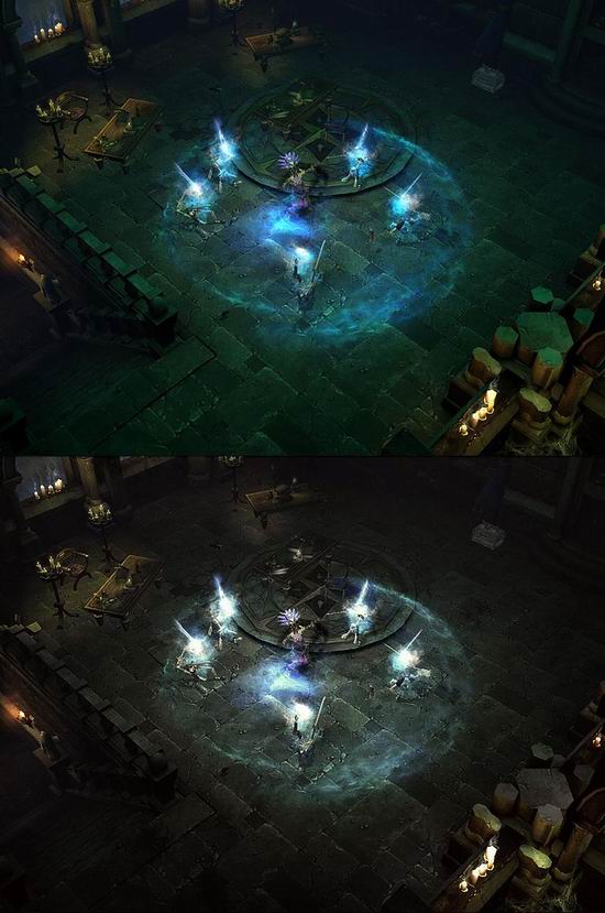 我不能认同的原因之一是,该设计实际上完全背离了《Diablo II》。你回头看看《Diablo II》中的魔法效果,那是压倒一切的浓墨重彩之笔,对我来说,任何将其阴暗化的企图都是剥夺其生机与趣味的反暗黑之举。