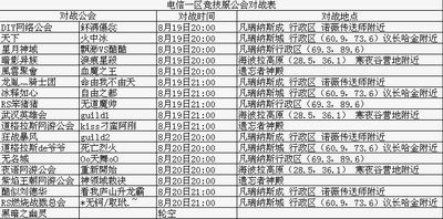3比赛前半小时为准备时间。例:20:00比赛正式开始,19:30各比赛公会成员开始集结至比赛场所。20:00双方公会会长前往具体比赛处进行宣战。