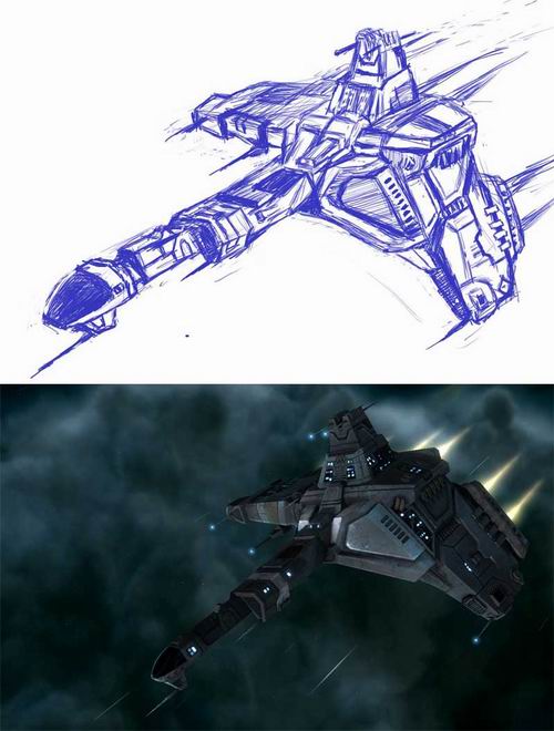 今天带给大家的是玩家的飞船素描作品。为方便对比,玩家作品位于图片上方,游戏实际截图位于图片下方。