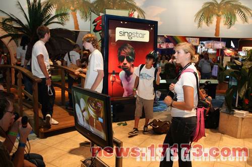 实际上在此次游戏展上主要游戏公司都把各自的音乐游戏摆出来吸引玩家。其中最典型的就是索尼开发的KTV游戏《Sing Star》展台,该展台位于主展馆第三展厅中央,供玩家们唱歌游戏。(文/17173小韩)