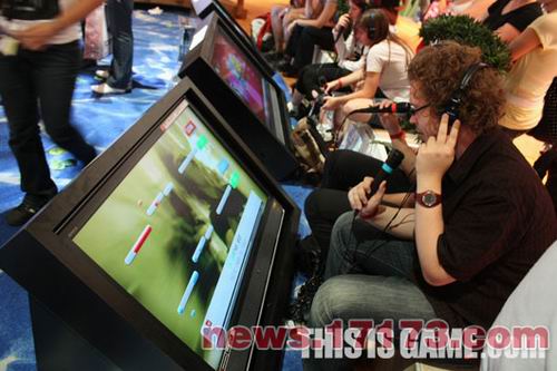 实际上在此次游戏展上主要游戏公司都把各自的音乐游戏摆出来吸引玩家。其中最典型的就是索尼开发的KTV游戏《Sing Star》展台,该展台位于主展馆第三展厅中央,供玩家们唱歌游戏。(文/17173小韩)