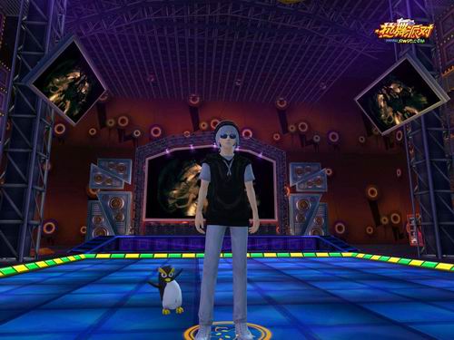 与美人精灵一同出现在大家眼前的还有一只超级无厘头的宠物企鹅,它跟我们平时想象中憨厚老实的胖企鹅可不一样。《梦幻舞厅》中的宠物企鹅时刻都竖着自己的大眉毛,除了主人谁也不理,就算跟着主人一起也静不下来,东瞅瞅西看看可调皮了,活脱脱就是企鹅版的加菲猫。可它瞪着的大眼睛和造型奇怪的眉毛,总让人忍俊不禁,有这样一个活宝宠物保证会给你的游戏生活带来更多欢笑。