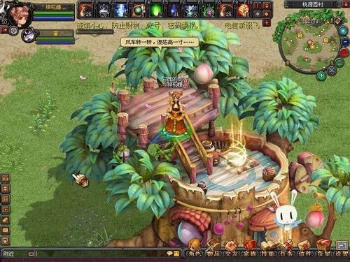 神州岛是繁华的代名词,与比翼的宁静相反,这里的“闹”是发自内心的喜悦。上飞鹤台,游芳草林,进桃树屋内坐上一坐,与试链小仙对羿一局,享受每一份阳光的滋润……行人在你身边匆匆走过,白兔在你身旁午睡,微风轻拂你的脸颊。神州岛,更像自由幻想世界美好的结合之地,美得温暖,美得自然,美得不失真实。