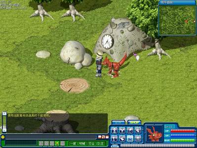 在时间石的下边,发现了一个很大的耳环。耳环?这种地方怎么会有耳环呢?我正纳闷,从石头后面跑出了两个拿着棍棒的数码宝贝。