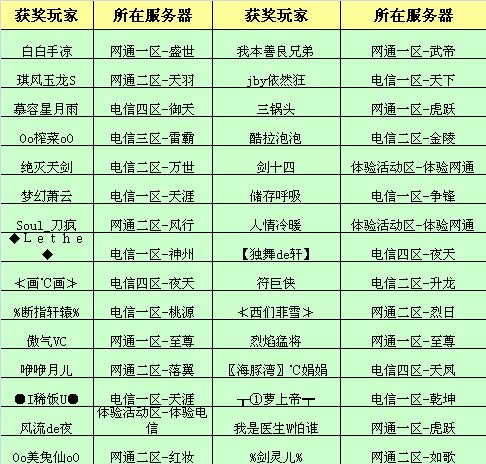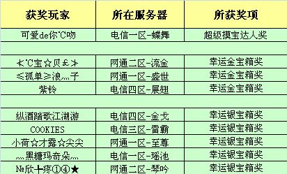 除此之外,还有30名幸运玩家获得了幸运铜宝箱奖,获奖名单如下: