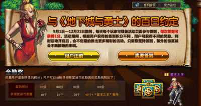 参与活动的方法非常简单,玩家在活动期间内,每天登陆《地下城与勇士》官方网站活动页面参与签到,就可获得当日签到积分,每位用户每天可获得1积分,当然在中秋节、国庆黄金周、圣诞节这些特殊的节日,积分可都是翻倍的哦。