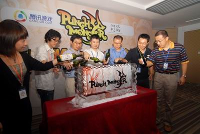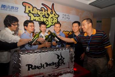 随着腾讯总裁刘炽平与Nextplay社长YANG KI CHANG步入签约台,签约仪式也到达了最高潮。当象征热情的香槟酒徐徐注入会场中央的巨型冰雕,《Punch Monster》的LOGO也缓缓浮现。激扬的音乐响起,礼花四散,意味着《Punch Monster》正式入驻腾讯,迈开了进入中国游戏市场的第一步。