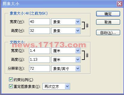 由于我们约束了比例,所以调整后的大小是40*32,点击确定。