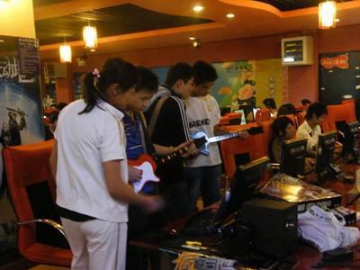 尽管消息发出得很晚,但在昆明的一系列活动中仍有很多玩家到场助阵。《疯狂吉他》是一款可以在音乐中展示自己,满足年轻人强烈的表现欲的游戏平台。它巧妙的结合了音乐与娱乐,一改往日以键盘为主的传统玩法。助阵的玩家们不仅令在场的音唯响工作人员多少有些意外,也让我们了解到打破陈规的游戏正式玩家朋友们的期待。而更夸张的是,有些玩家在参加完第一个网吧的活动后,又参加这里的第二个网吧的活动,就是想要好好体验下这款摆脱键盘的束缚的大型音乐休闲游戏!
