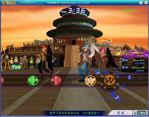 4.当开启“劲舞追分模式”后,隐藏输入指令过程;“太鼓追分模式”开启后方向键到达特定区域后将变为“W”标志。由此极速、精彩的“追分模式”就正式开始了