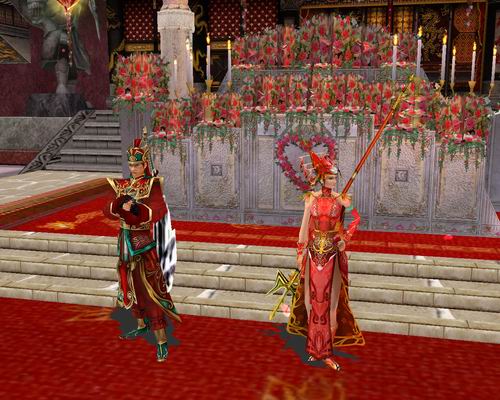 回想两个人在《英雄2》相知相爱,是由缘分而定,冥冥中有千丝万缕牵连,让你们在此相遇,彼此结识,情怀相近,意趣相投,相知如镜。一起在忘却无边的魔宫沙漠力斗魔佛;在天水赏茫茫雪原,莽莽苍苍,气象万千;在火龙宫承受入魔的生死抉择...... 经过了无数次生与死的考验,你们真挚的爱情应该有个完美的结局。官方即将举行的世纪婚礼是你们的最佳选择,该婚礼由官方GM亲自主持,在充满温馨浪漫的结婚礼堂中举行,每周只为两对情侣开启,让你们在无数绚丽的焰火下接受所有人的祝福,绝对让成为万众瞩目的焦点。