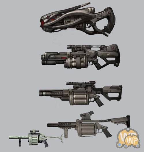 从设定图中可以则看到熟悉的Goa'uld Zat枪、Jaffa权杖武器、人类刀枪、Asgard小灰人等,不过也有一些从来没见过的东东,另外这些概念设定都有多种造型,显然是为不同等级玩家准备的。