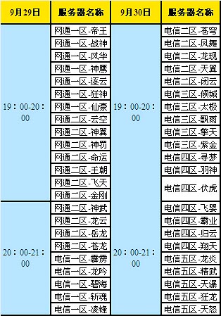 活动时间:9月29日、30日 19:00-21:00