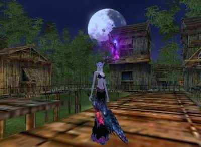 幽密的竹林深处,掩藏着一座座精美别致的竹楼。明眸皓齿的少女,轻倚竹楼小窗,吹一曲竹笛婉转悠扬。时而回眸,顾盼生辉,那是美丽多情的羽族女子在轻舞,轻轻蕴在朦胧的白雾中令人浮想联翩。竹楼里的姑娘,婀娜多姿的身影,踏着优美的舞步款款迎面走来。甜美温婉的羽族女子是神的化身,散落人间光彩夺目。多少深情的眼神,窗前倾诉着心中的爱慕。竹楼匠心独具,竹楼外有一圈篱笆,篱笆上爬满了紫藤花。时值紫藤花开,那满篱鲜花,香飘谷里,宁静古朴的气息便在青翠的竹林中慢慢释放。竹林一缕风,曼摇半轮月。带着几分晃惚的神情,轻轻漫步在紫藤花间,空气中飘浮的依然是那丝甜甜的清香,风中传来一阵阵醉人心扉的歌声:“月光下的凤尾竹,轻柔美丽象绿色的雾……”