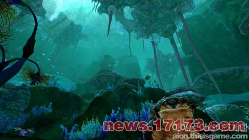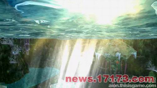 在视频中可以看到《永恒之塔》和《天堂2》相同,不仅可以游泳还可以进行水中战斗。仔细看视频可以感觉到从水面开始越往下走光线越暗,水中的周围环境也做得很精美。
