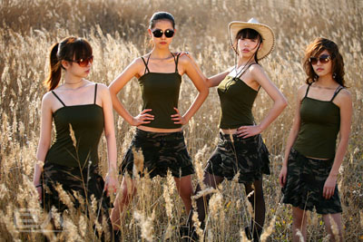 迷彩短群、吊带背心在这些获奖选手的身上分外妩媚,这些选手全都是《巨人》玩家,在游戏中早已见惯了硝烟炮火,演绎这套军装可谓得心应手。