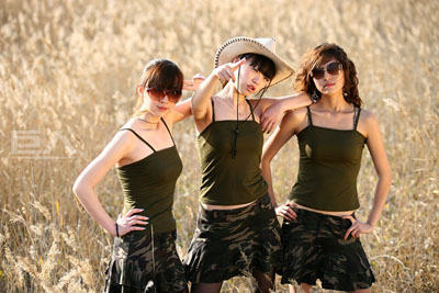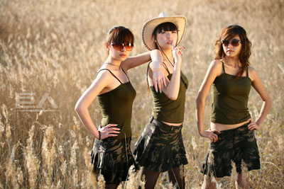 简单明快,3位美女的军装组合尽展女性的飒爽英姿。
