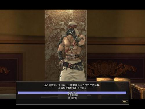 【第二步】冷漠的凯莉会让您先与边上的佣兵队员对话,佣兵队员会向您诉说凯莉的过去,同时还会将您送到凯莉当年护送公主的船上,在船上会出现刺客行刺公主的情节,作为旁观者的您,可以不必参与战斗。最终凯莉会率领所有护卫击退行刺者。