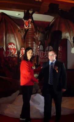 在现场新闻发布会仪式上,游戏蜗牛CEO石海与AOE集团总裁尼古拉斯基.弗拉基米尔先生共同打破了传世巨蛋,并释放出封印的圣像黑龙,怒飞张翼,正式宣布合作启动。在国际市场上极受欢迎的奇幻大作《龙战:龙之遗产》也将由游戏蜗牛引进中国!