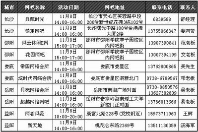 比赛的精彩,只有在现场才能有更加深刻的体会,您是否也迫切的希望在赛场上一展身手呢?那就快来参加CF百城大联赛吧!以下是本周末湖南区赛事及网吧名单,期待您的参与!