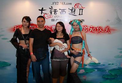 2008年10月30日下午,大话Ⅱ答谢会的现场熙熙攘攘,这特别的一家三口甫一出现,便被现场的玩家簇拥起来。因大话Ⅱ而结缘的情侣玩家不少,但拖儿带女而来的家庭组确是另一番感觉,不由得让我们想起了大话Ⅱ第七部资料《两小无猜》的温情一幕,“咱家的孩子会打酱油了!”。大家又兴奋又羡慕,像是打开了世界频道,争相提问:“你们是在哪个服啊?”“你们真的是在大话Ⅱ认识然后结婚的吗?” 更有玩家爆出惊人语录:“小宝宝多大了,看样子天资一定很牛!”这幸福的一家也被大家的热情所感染,小宝宝睁大了眼睛好奇地打量每一个人,爸爸主力负责解答各位朋友的问题,妈妈在一旁协助。